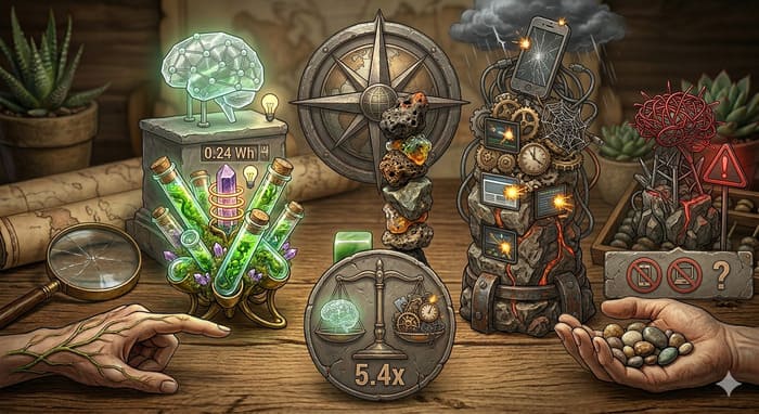 Pourquoi ça compte. Le narratif “l’IA pollue 10x plus que Google” reposait sur une mauvaise comparaison : serveur vs serveur. En réalité, une recherche mobile complète (pages lourdes, réseau, pub en arrière-plan) consomme jusqu’à 5,4 fois plus qu’une requête LLM. Ce que ça change : l’IA supprime toute la friction de navigation — et surtout la “taxe énergétique” invisible du web publicitaire. Résultat, paradoxalement, sur mobile, poser directement sa question à un LLM est souvent plus sobre que de passer par Google.